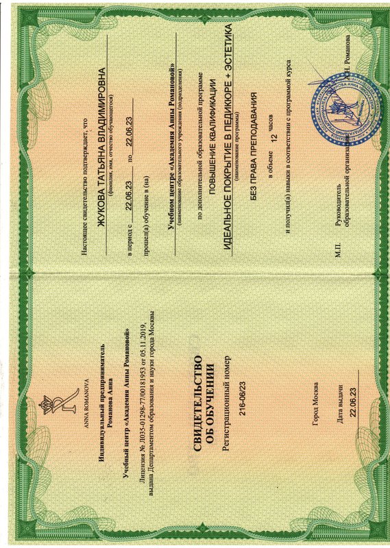 Подолог центра хорошо со мной общалась и предоставила качественные услуги. Я обратила внимание на её аккуратность в работе: мастер выполнила полный педикюр. После процедуры она дала все необходимые рекомендации.