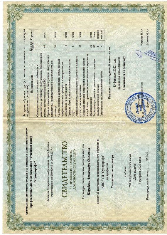 Пользуюсь услугами Александры года 3-4, она профессионально выполняет свою работу. У меня не было проблем подологического свойства, но были косметические проблемы, Александра дала рекомендации по устранению этих проблем.